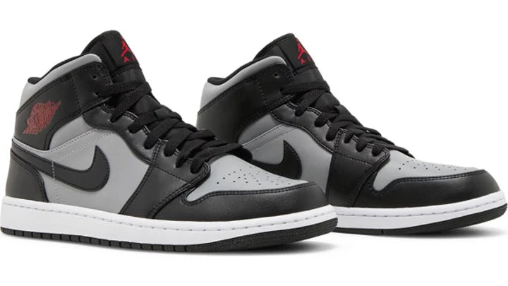 Made for big kids, the Air Jordan 1 Mid GS ‘Shadow’ features a neutral two-tone palette with contrasting color-popped accents. The all-leather upper pairs a Particle Grey base with black overlays along the forefoot and heel. The sneaker’s branding elements, including a Wings logo stamped on the lateral collar and a Jumpman icon atop the woven tongue tag, appear in a vibrant Gym Red hue. Lightweight cushioning is provided by a rubber cupsole with an encapsulated Air-sole unit nestled under the heel.