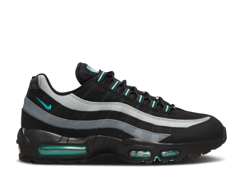 The Nike Air Max 95 ‘Black Aurora Green’ is a modern take on the classic silhouette, blending bold aesthetics with performance-driven features. Designed by Sergio Lozano, the Air Max 95 draws inspiration from human anatomy, with the upper’s layered panels representing muscle fibers and the midsole symbolizing the spine.