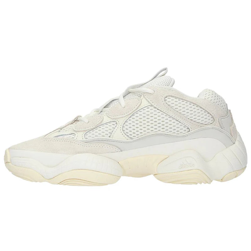 Kanye West and adidas revisit the Yeezy 500, this time in a ‘Bone White’ colorway. This August 2019 edition follows the silhouette’s established, chunky silhouette with a cow suede, premium leather and mesh upper in off-white tones. As in colorways past, this edition includes reflective piping details and the unmistakable, retro basketball midsole design. adidas adiPRENE+ cushioning pairs underfoot with contoured rubber pods to promote traction.