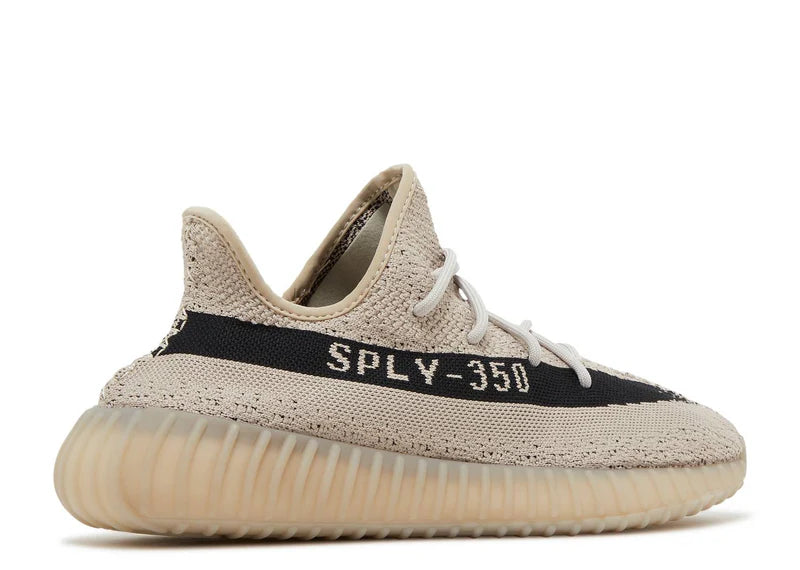 The adidas Yeezy Boost 350 V2 ‘Slate’ complements the minimalist silhouette with a neutral two-tone colour scheme. The sock-like upper utilizes tan Primeknit construction, highlighted by distinctive center stitching down the vamp. A contrasting black streak adorns the lateral side with signature ‘SPLY-350’ branding. The lightweight build rests on a full-length Boost midsole, wrapped in a semi-translucent TPU cage for improved durability and support.
